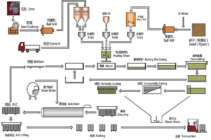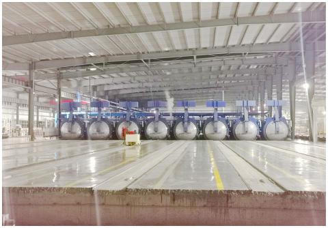 我司生產(chǎn)基地設(shè)有一條專業(yè)生產(chǎn) ALC(蒸壓加氣混凝土板)的全自動化生產(chǎn)線,八條高溫蒸壓釜,在將原材料研磨-攪拌-澆注-將鋼筋網(wǎng)籠放到模具里-靜養(yǎng)3小時-脫模切割-升溫、恒溫、降溫共14小時的精細(xì)工藝流程后,生產(chǎn)出來的墻板在耐久性、抗凍性、抗?jié)B性方面表現(xiàn)很好。